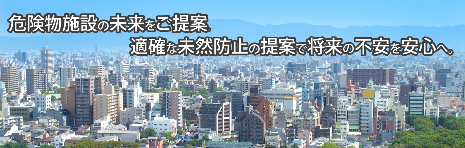 【検査・検定・調査・改善】の事業を通じ、お客様の将来を考えた【本物志向のサービス】で少しでも多くの満足を提供すること、そして将来の不安を安心に変えるご提案をさせて頂く事で、関西地区の危険物取扱い施設様にはご要望以上のサプライズを持ってお応えしたいと考えています。